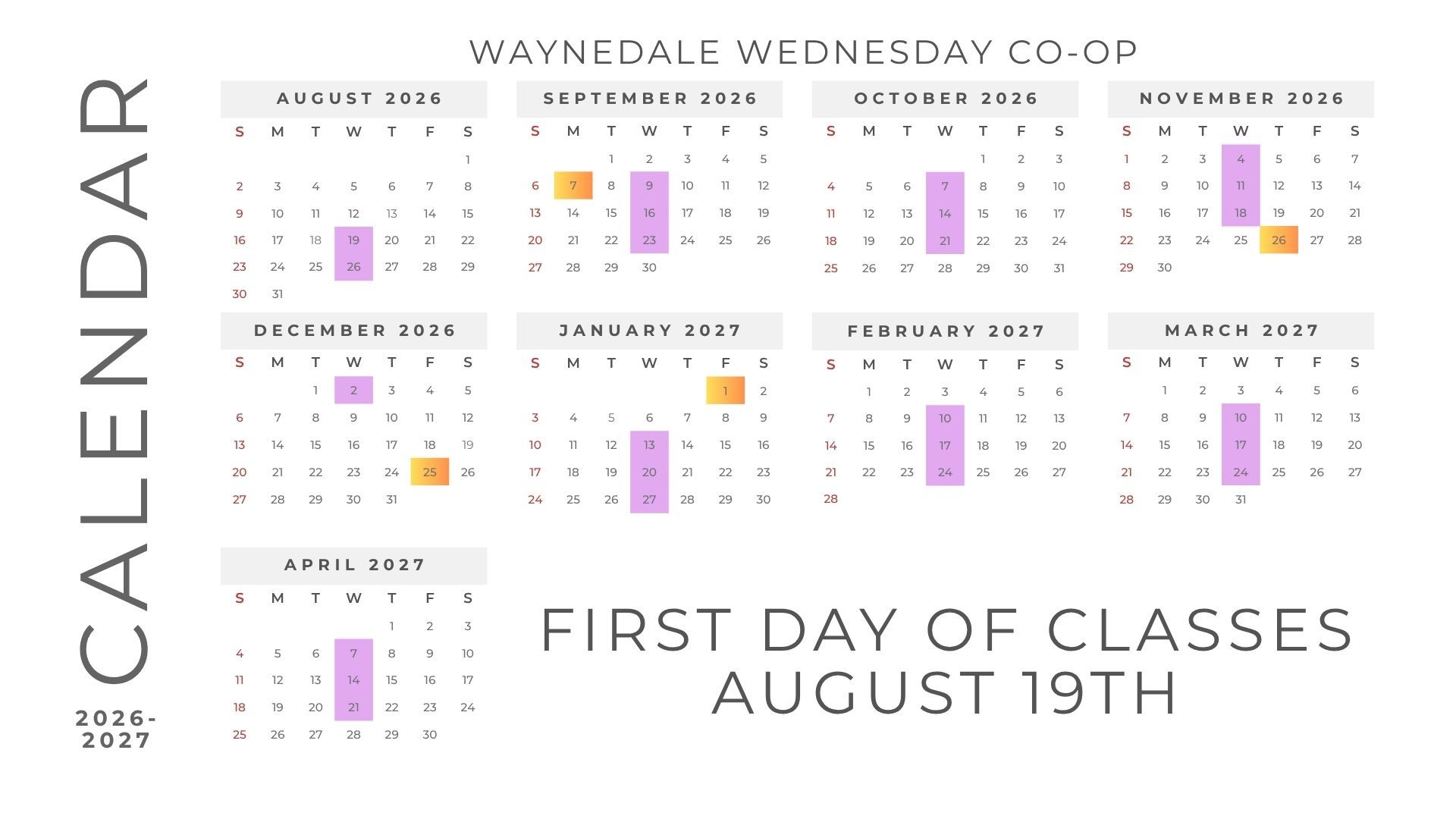 Semester 1: Aug 19, 2026– Dec 2, 2026 (breaks Sept 2, Sept 30, Oct 28, Nov 25) 5 weeks Christmas Break