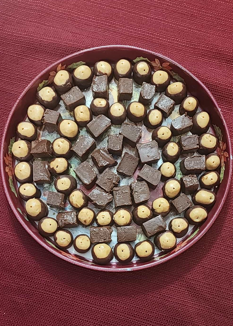 4 dozen buckeyes and almost 1 pound of fudge made from scratch by a homeschooling Grandma!