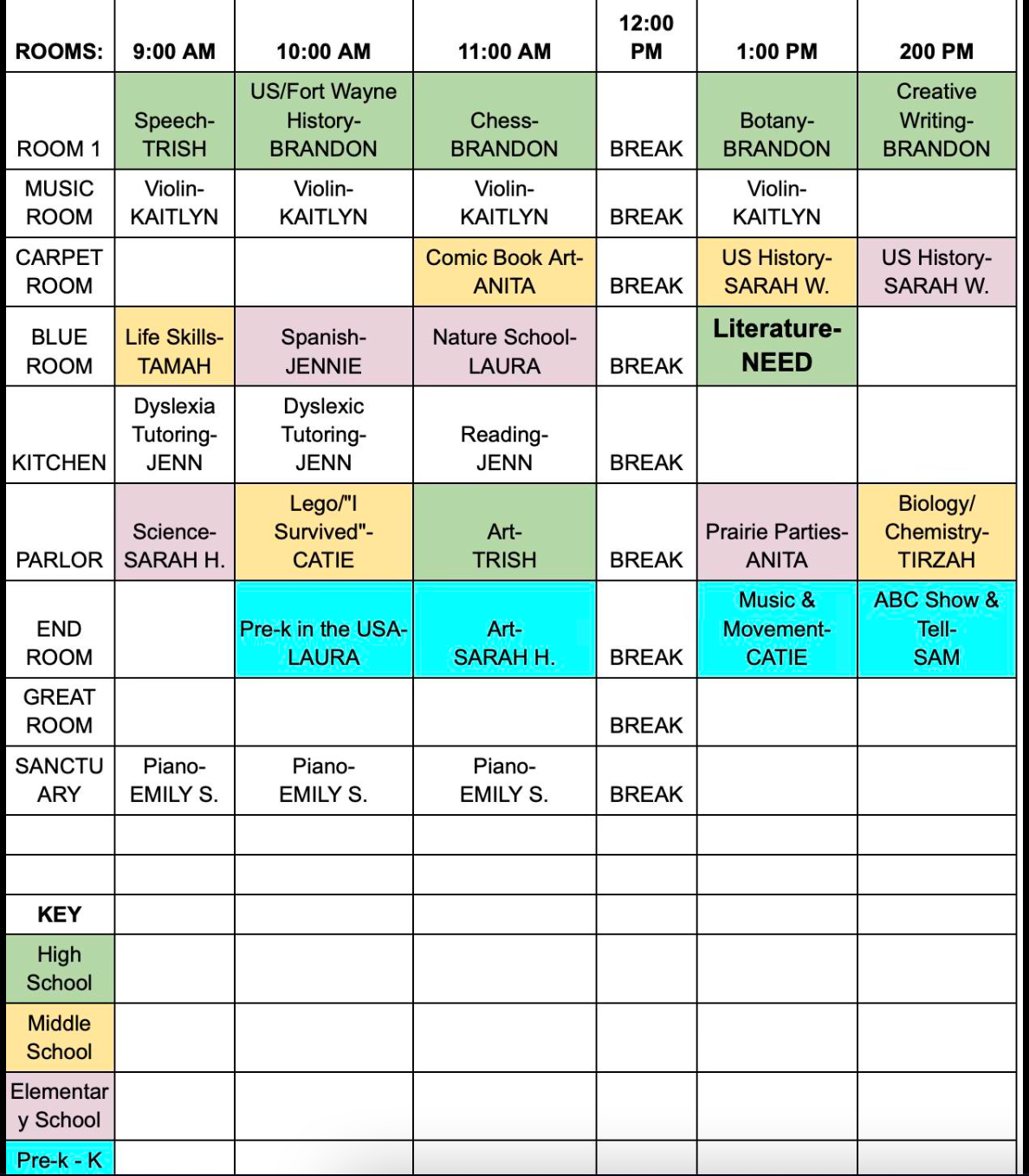 - All classes are eligible for anyone (including non-co-op families) to simply pay the cost of the class provided they've registered their family with our Family Registration Form ($25 annual fee).